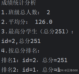 **代码注释**:关键逻辑(如查id、统计总分、排序)需加注释,说明操作目的;