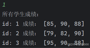 {"id": 1, "scores": [85, 90, 88]}, # id=1的学生,3门成绩分别为85、90、88