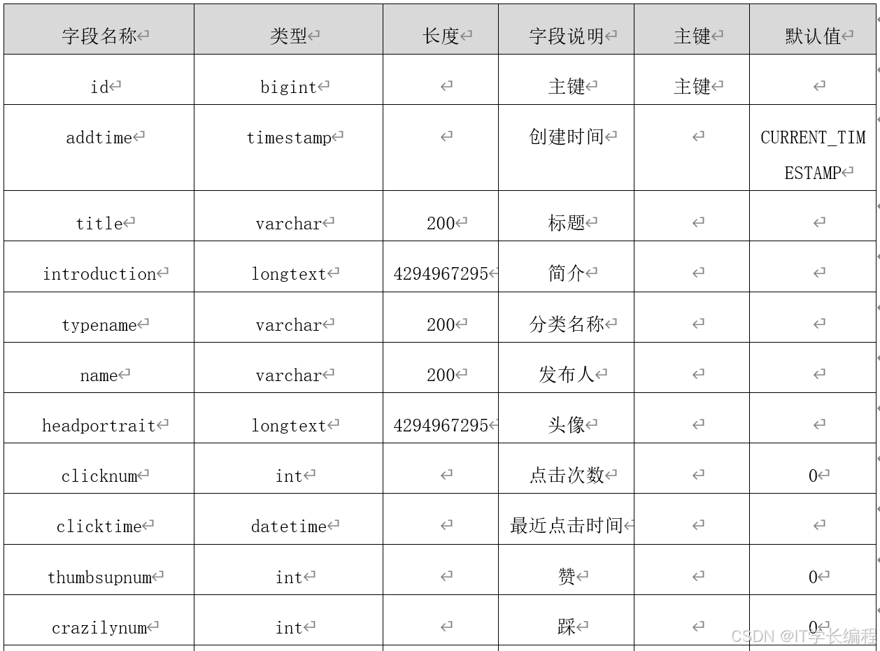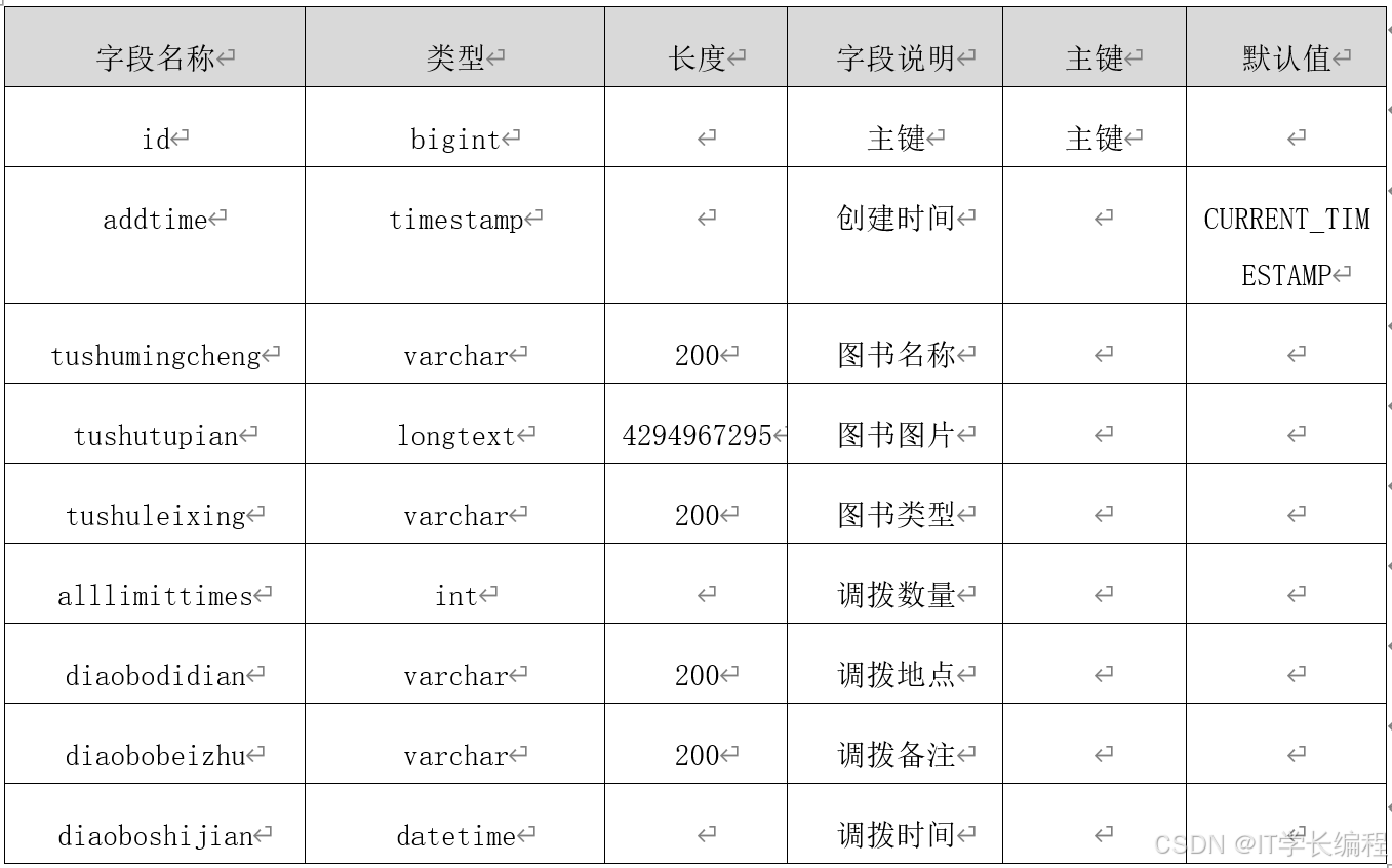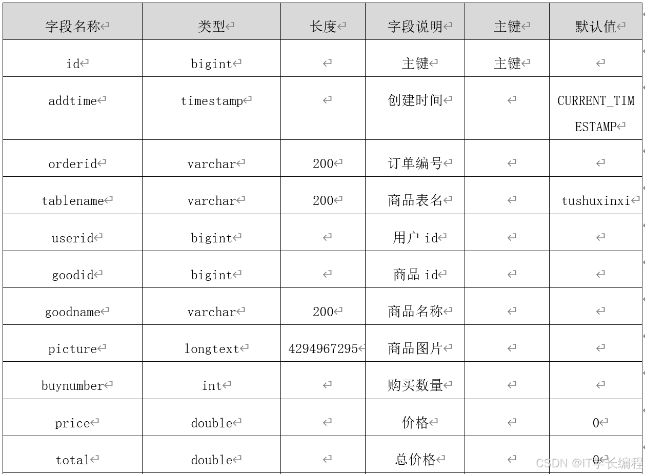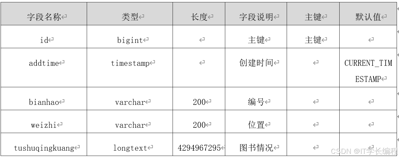 数据库表是设计与实现躲猫猫书店管理的基础,下面将对各个重要的数据库表进行逐一讲解。下面是系统中重要数据库表的设计。数据表的详细情况如下表所示。