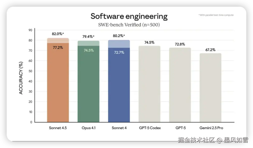 说到硬实力,Sonnet 4.5简直是来踢馆的。Anthropic没有空喊口号,直接甩出了一连串让人眼红的跑分数据: