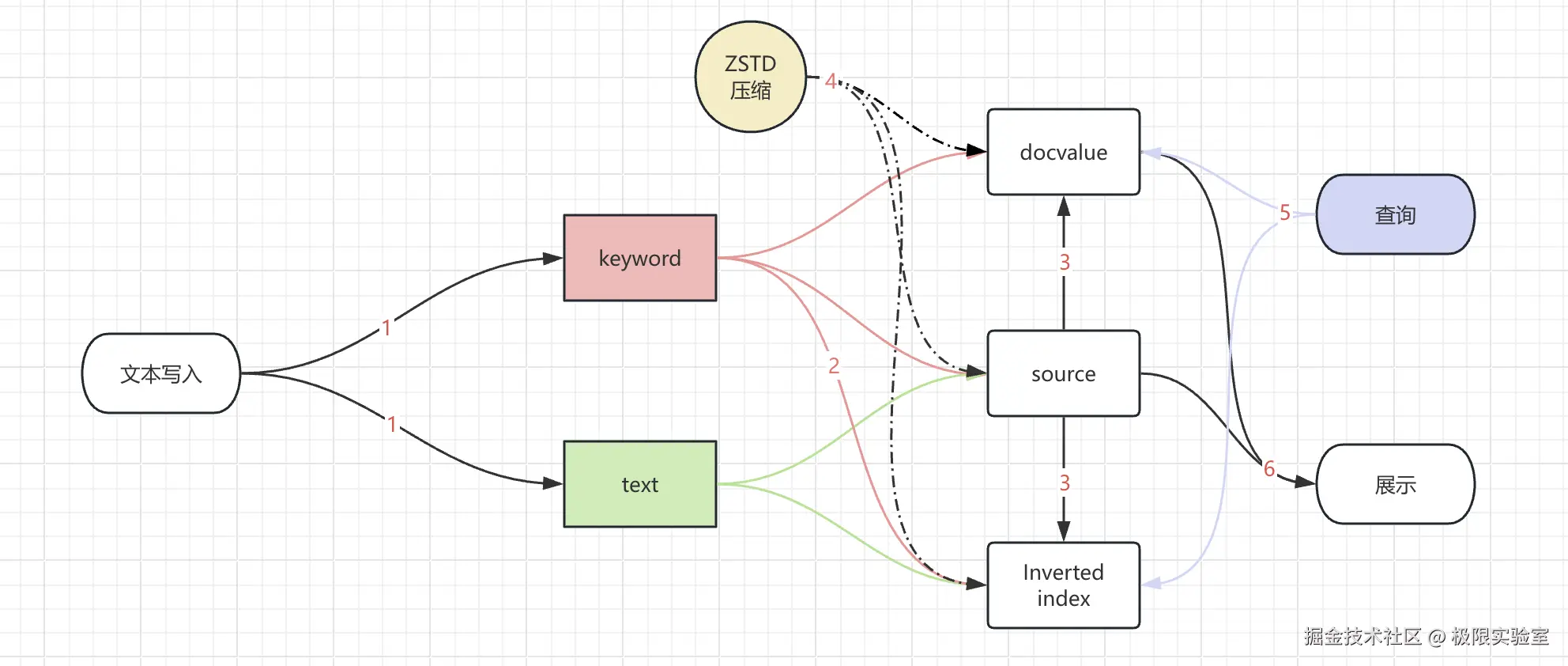 - 字段写入索引的时候,不仅写了 text 字段也写了 keyword 字段。