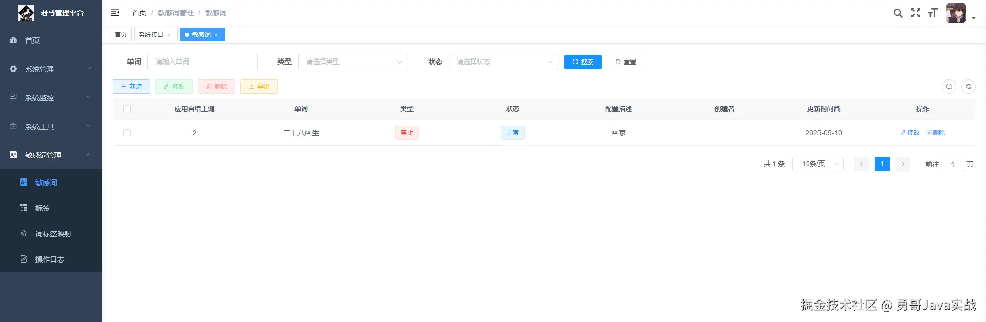 - 🏷️ 标签分类: 支持敏感词分类分级管理