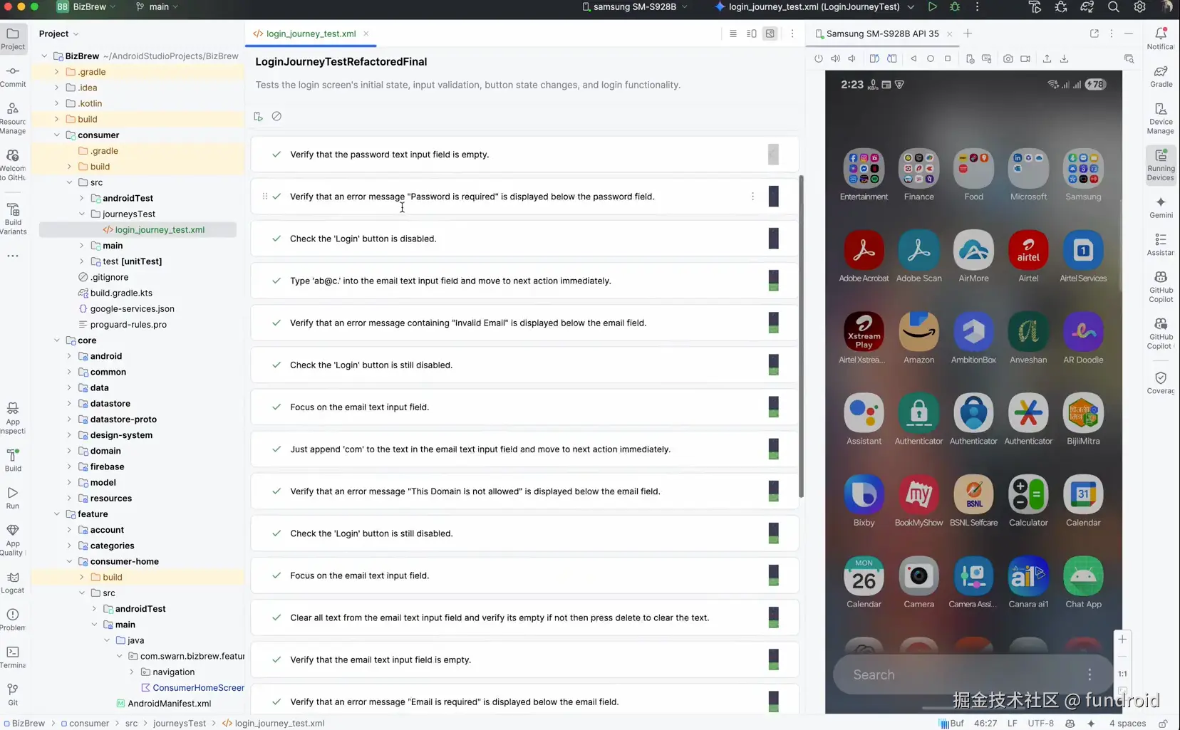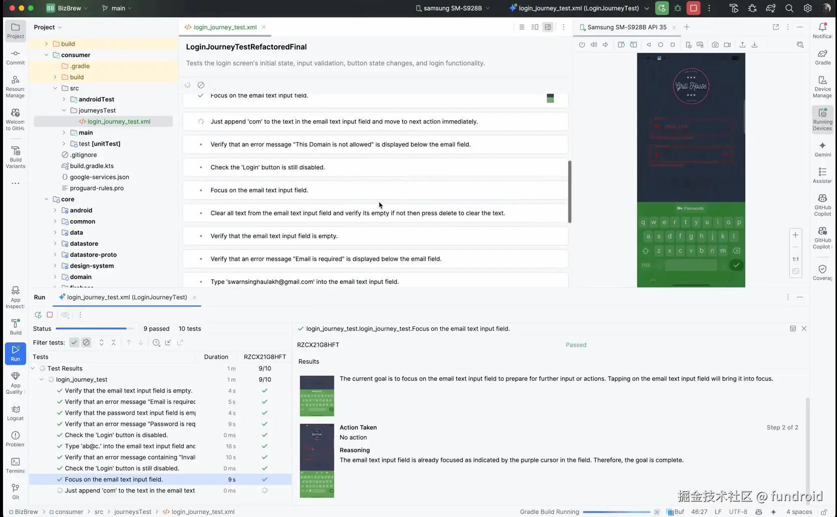Gemini AI 就能将这些描述转化为可执行的测试用例,让测试用例既方便人类阅读和理解,又能被机器精准执行,就像产品经理或 QA 描述测试计划,Android Studio 能将其转化为完整且功能齐全的 UI 测试,包含断言和导航等关键部分。