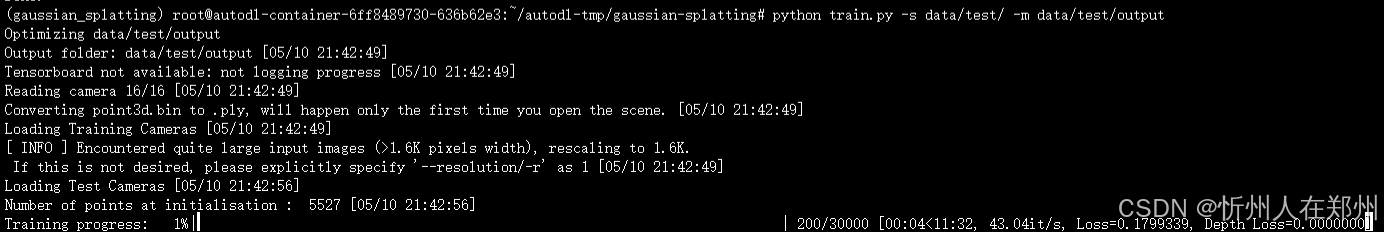 的路径,可以根据自己存放的位置自由修改)【这步是参考基于AutoDL平台的3D_Gaussian_Splatting初体验这个文章的,但是博主遇到了错误,具体看下面】 - 上一步可能遇到的错误
