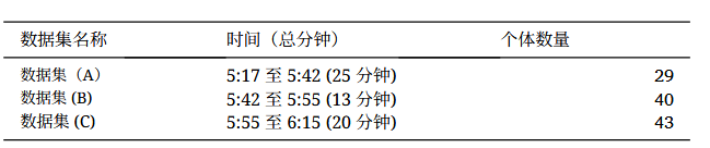每个数据集都被划分,以便每头奶牛至少出现在40帧中。考虑到在 实际操作中获取所有个体奶牛图像的难度,使用包含29头奶牛(A)的 数据集用于训练牛检测器,而包含40头和43头奶牛的数据集(B)和 ©则用于评估。