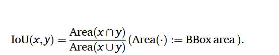 在检测矩形组 Ot 和在第 1 步和第 2 步获得的估计矩形组 Ht 之间执 行矩形匹配,以最大化矩形之间的交并比 (IoU) 之和。两个矩 形区域 x,y 的 IoU 由以下公式定义: