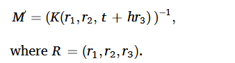 - 通过考虑奶牛背部的高度h,参考平面在 Z = h 从理想(未畸变) 图像坐标到世界坐标的平面投影变换矩阵 M由以下公式确定: