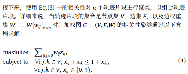 从多个相机检测到的图像中提取的图像特征和运动特征生成聚类;假 设为匀速运动。在此方法中,两个轨迹片段 i 和 j 之间的图像特征相关 性 w(a) ij 、运动特征相关性 w(m) ij ,以及观测时间差 Δtij,定义如下: