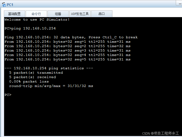 ip address 192.168.10.254 255.255.255.0 //配置网关