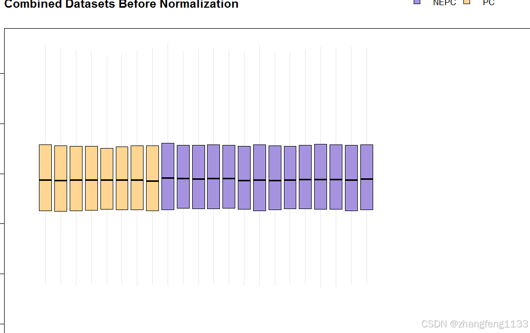 mtext("Combined Datasets Before Normalization", # 标题文本