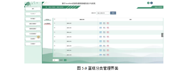 管理员点击蛋糕分类管理,在蛋糕分类管理页面输入蛋糕分类等信息,可以查询,添加或删除蛋糕分类等操作。如图5-9所示: