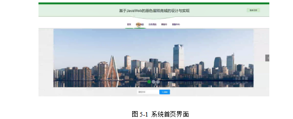 当游客打开系统的网址后,首先看到的就是首页界面。在这里,游客能够看到原色蛋糕商城的导航条显示首页、蛋糕商品、公告资讯、购物车、客服中心。系统首页界面如图5-1所示: