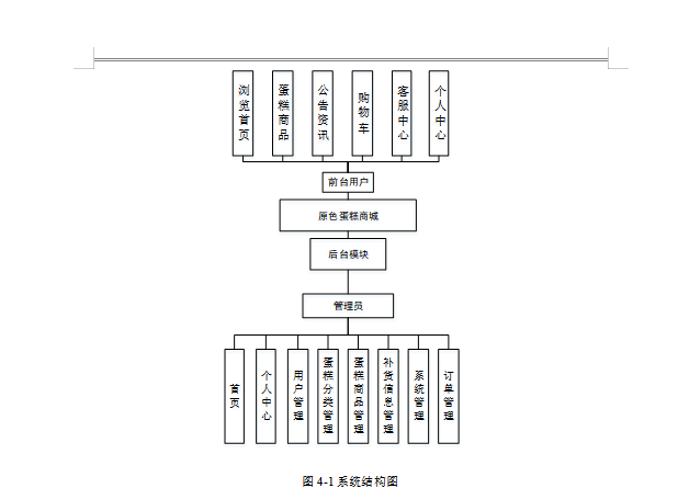 课题主要分为二大模块:即管理员模块和用户模块,主要功能包括:个人信息修改、用户、蛋糕分类、蛋糕商品、补货信息、系统和订单等;