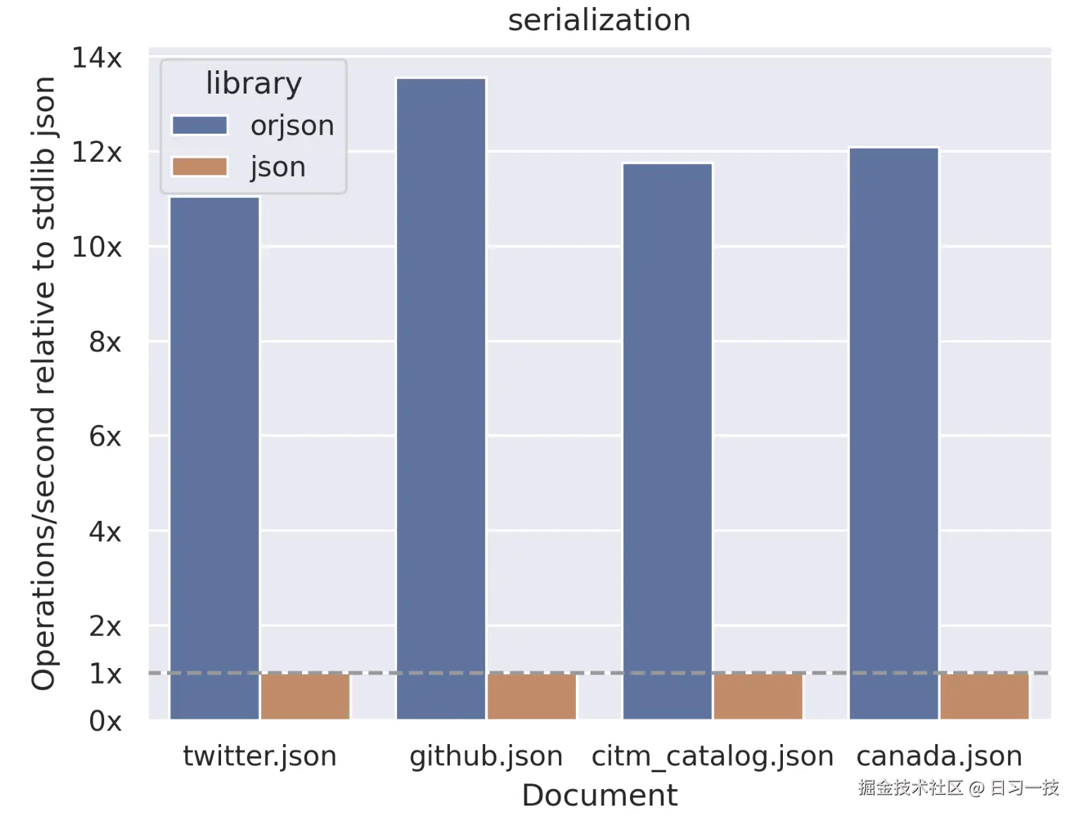 可以看出,虽然没有官网宣称的十几倍,但 orjson 确实比 json 快了一个数量级。