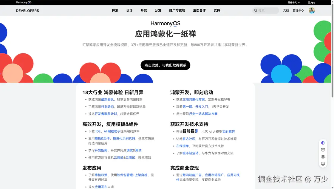 鸿蒙应用开发官网是所有鸿蒙应用开发者必须要熟悉和常用的地址,所有第一手鸿蒙应用开发的资料都在其中,而且是中文的,符合国人的口吻,这一点相比较与其他客户端开发,如安卓和ios等,有极大的收益,特别方便英文不太好的小伙伴 😄。