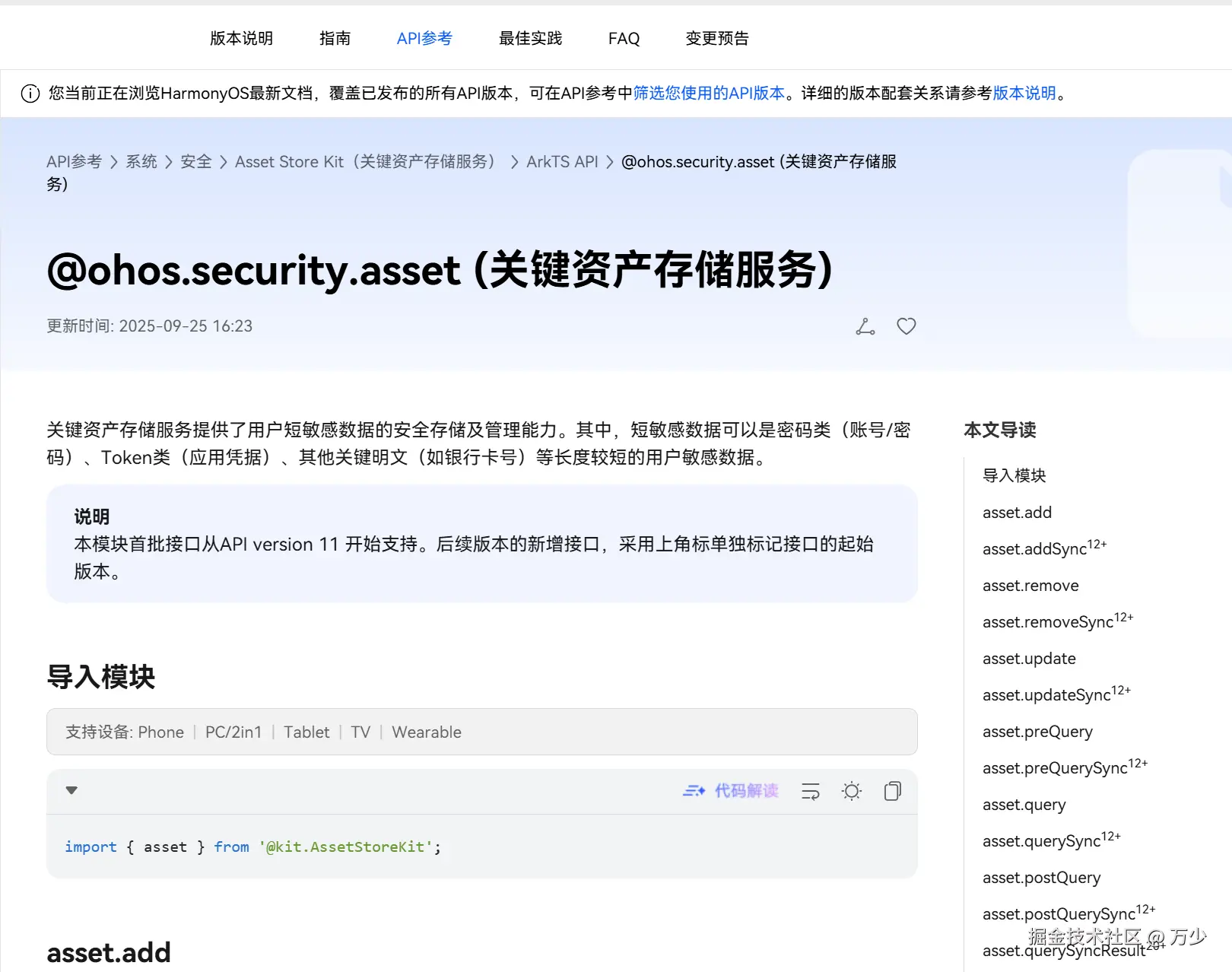 API 就想一门鸿蒙应用开发的字典,它会完整详细的告诉你某段API参数的具体说明,当我们想要精确了解某个核心代码的参数、返回值等信息的时候就需要在这里进行查看。