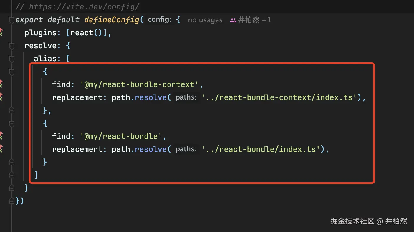 那接下来,我对 @my/react-bundle、@my/react-bundle-context 这两个模块使用 rollup 进行打包,并且注释掉刚才配置 alias ,再运行一下 dev 看看效果会是怎样的。这里我给大家看看简单的 rollup 配置: