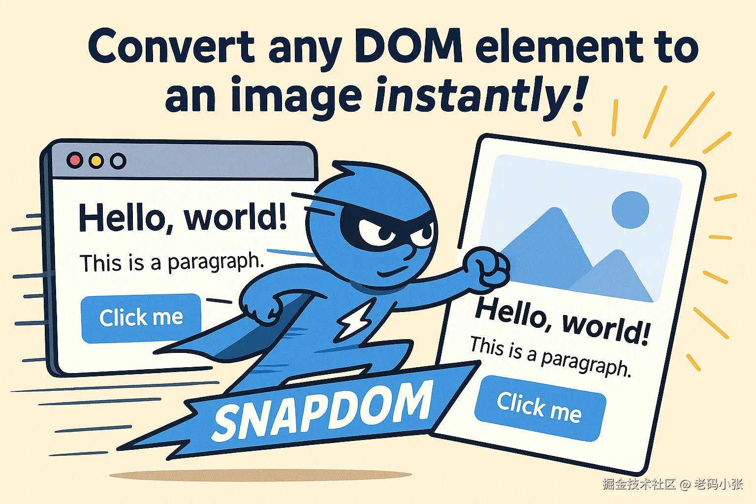 比如说------要在浏览器里「截图」一个元素。 听上去不难,对吧? html2canvas、dom-to-image、rasterizeHTML......一大堆库。随便 npm 搜一下,几千个结果。 但真用起来你就知道,那都是些「能用,但不太能用」的东西。