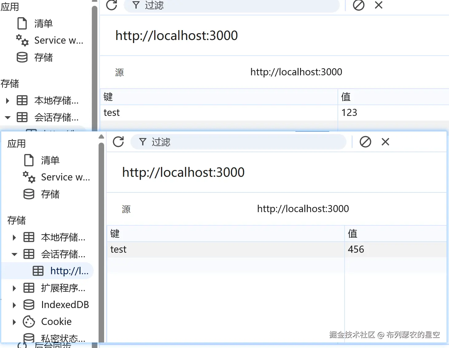 在其中一个窗口修改sessionStorage,另一个窗口的sessionStorage并不会跟着改变