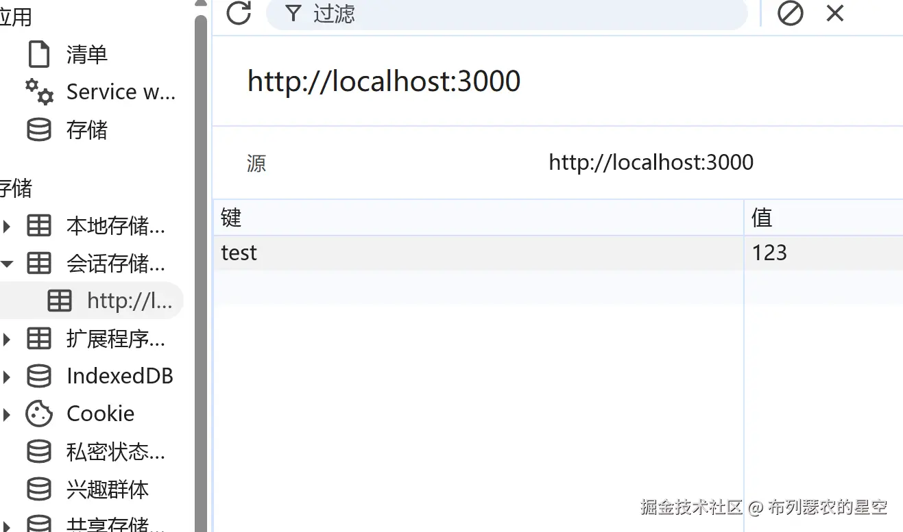 也就是从一个窗口打开另一个同源窗口时,新窗口会带上原窗口的sessionStorage。
