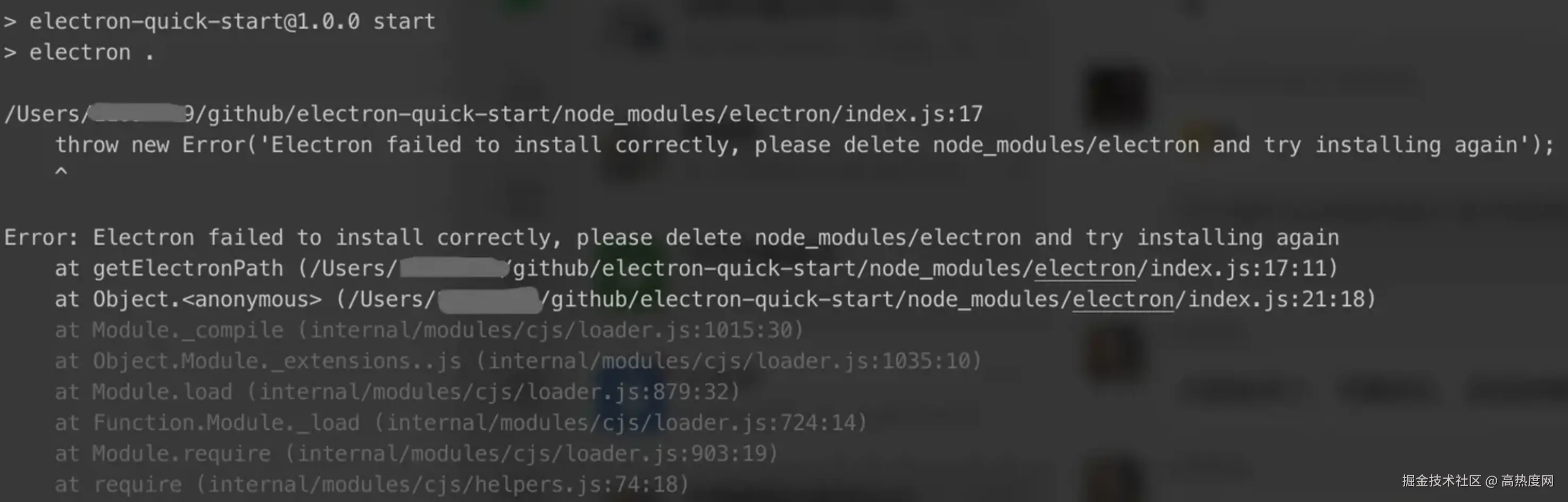 命令,准备开始 Electron 开发之旅时,却在控制台看到了类似以下的错误信息: