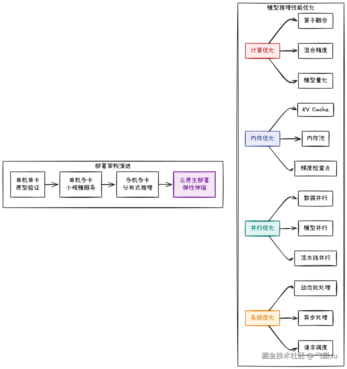 AI工程化与系统设计这80道题是从算法到生产的桥梁。很多算法同学觉得自己只要把模型调好就行了,部署的事交给工程师。但实际上,阿里云的ABE岗位、字节的AI应用研发岗位,都明确要求你"具备深厚的后端技术功底,对主流技术栈有深入的理解和实践"。这意味着什么?意味着你不仅要懂算法,还要知道怎么把模型变成能稳定运行的服务。