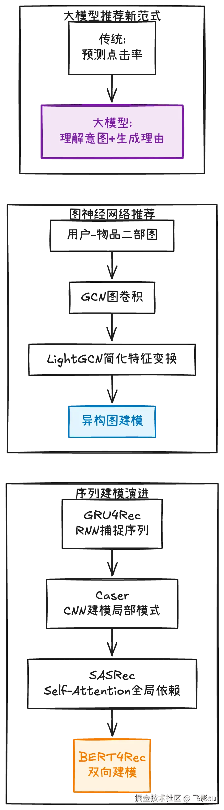 推荐与搜索算法这80道题专门针对投递腾讯推荐算法、字节广告算法这类岗位的同学。推荐系统是个很成熟的领域,从2010年的协同过滤到2015年的矩阵分解,从2018年的深度学习模型到2020年的图神经网络,技术演进路线很清晰。但2025年的推荐已经不是2022年的推荐了。大模型的介入让推荐范式发生了根本性改变:以前是"根据用户历史行为预测点击率",现在可以"理解用户的真实意图并生成个性化推荐理由"。