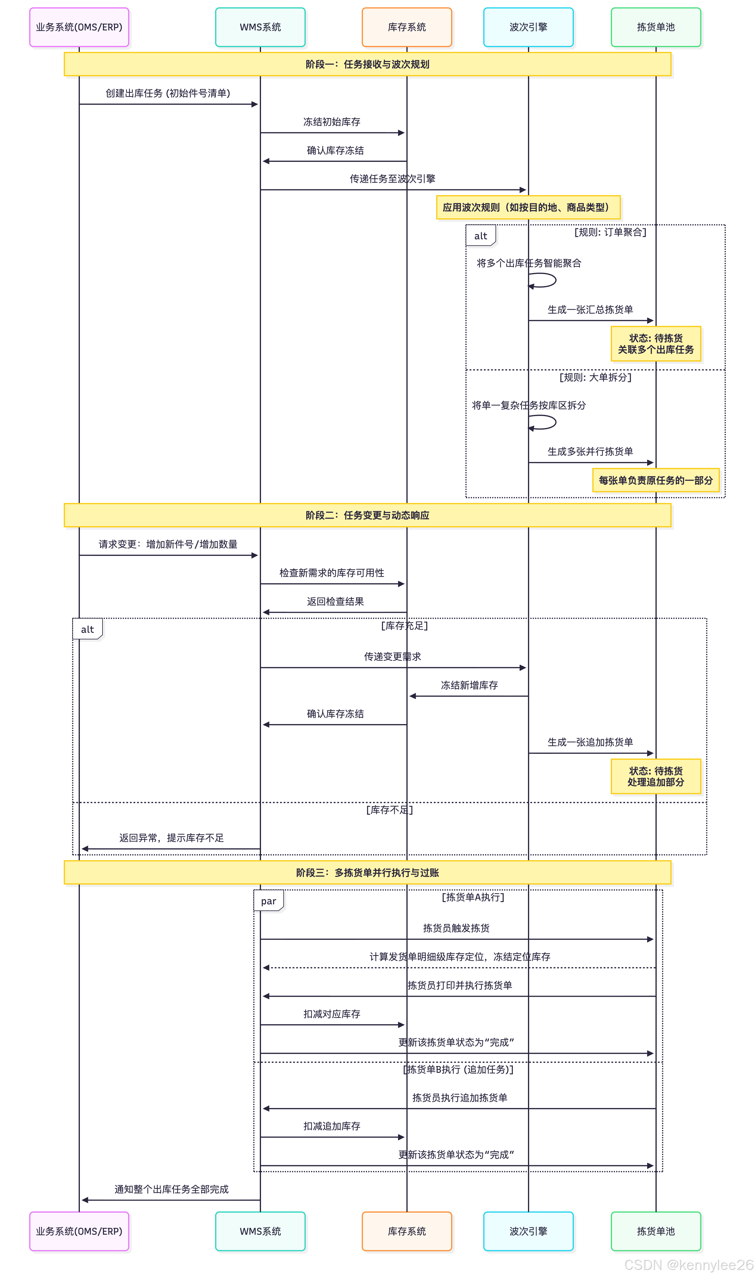 ); - 拣货执行阶段再精确计算并冻结到发货单明细级库存,以避免在任务生成时过早锁定库存,从而提升仓库作业的灵活性与并发性能;
