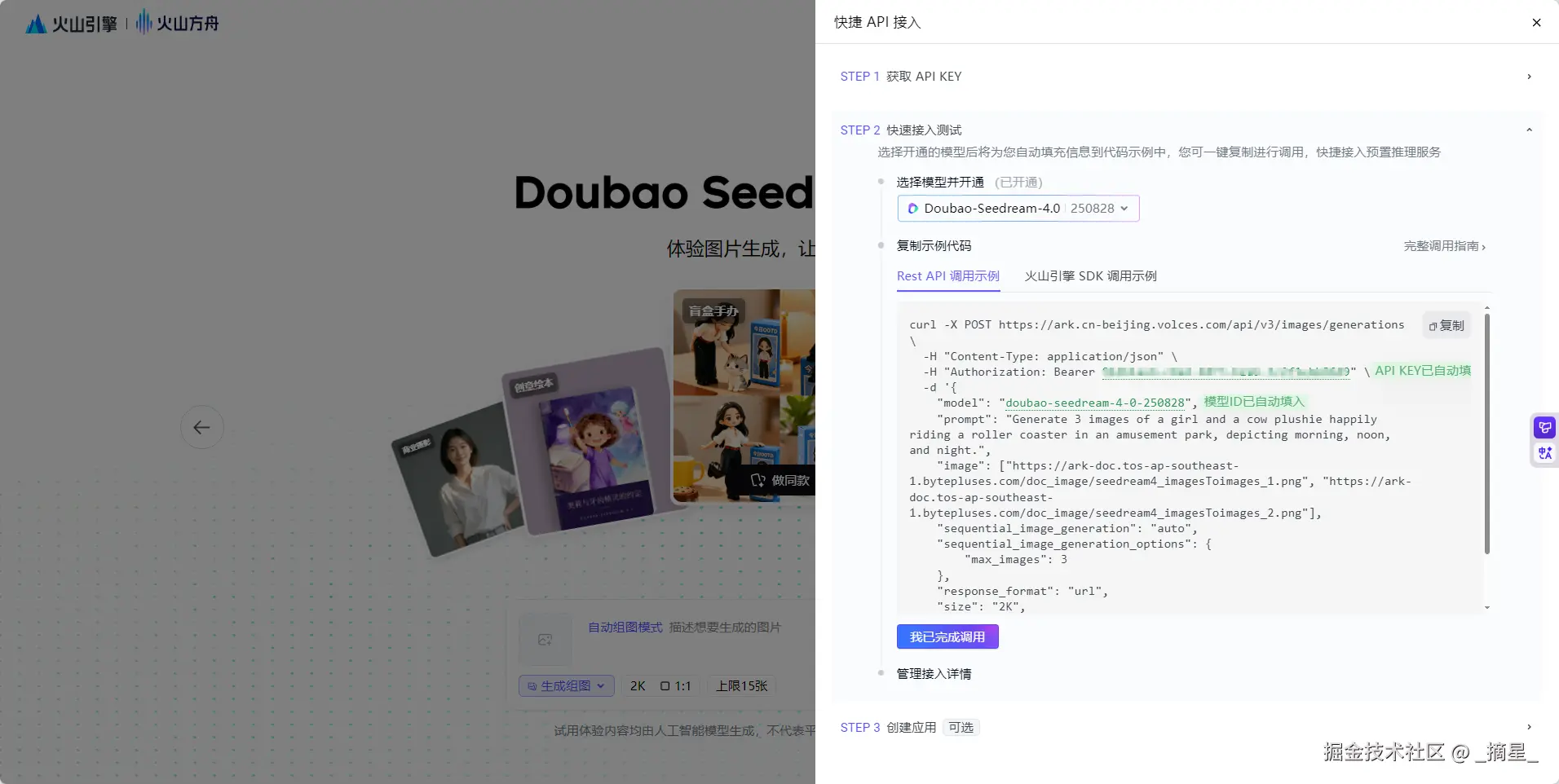 本项目所用的视觉理解大模型和文生图大模型均采用火山引擎Mass平台,分别是doubao-seed-1-6-vision-250815和doubao-seedream-4-0-250828