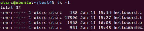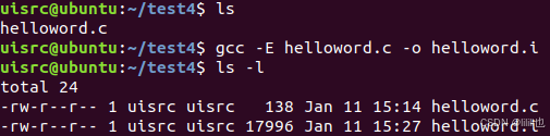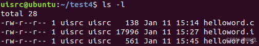 通过 ls 指令,我们看到文件大了许多,因为预处理将头文件也包含进来了: