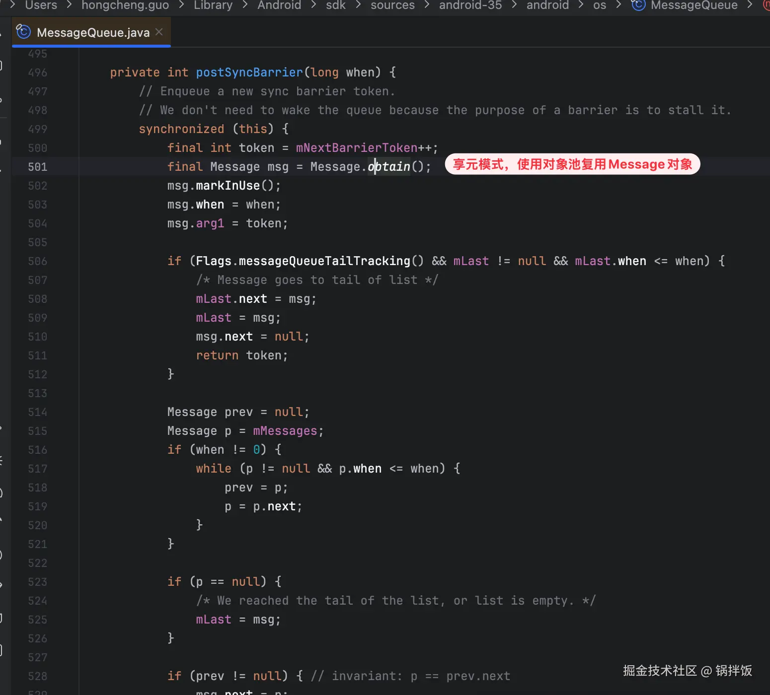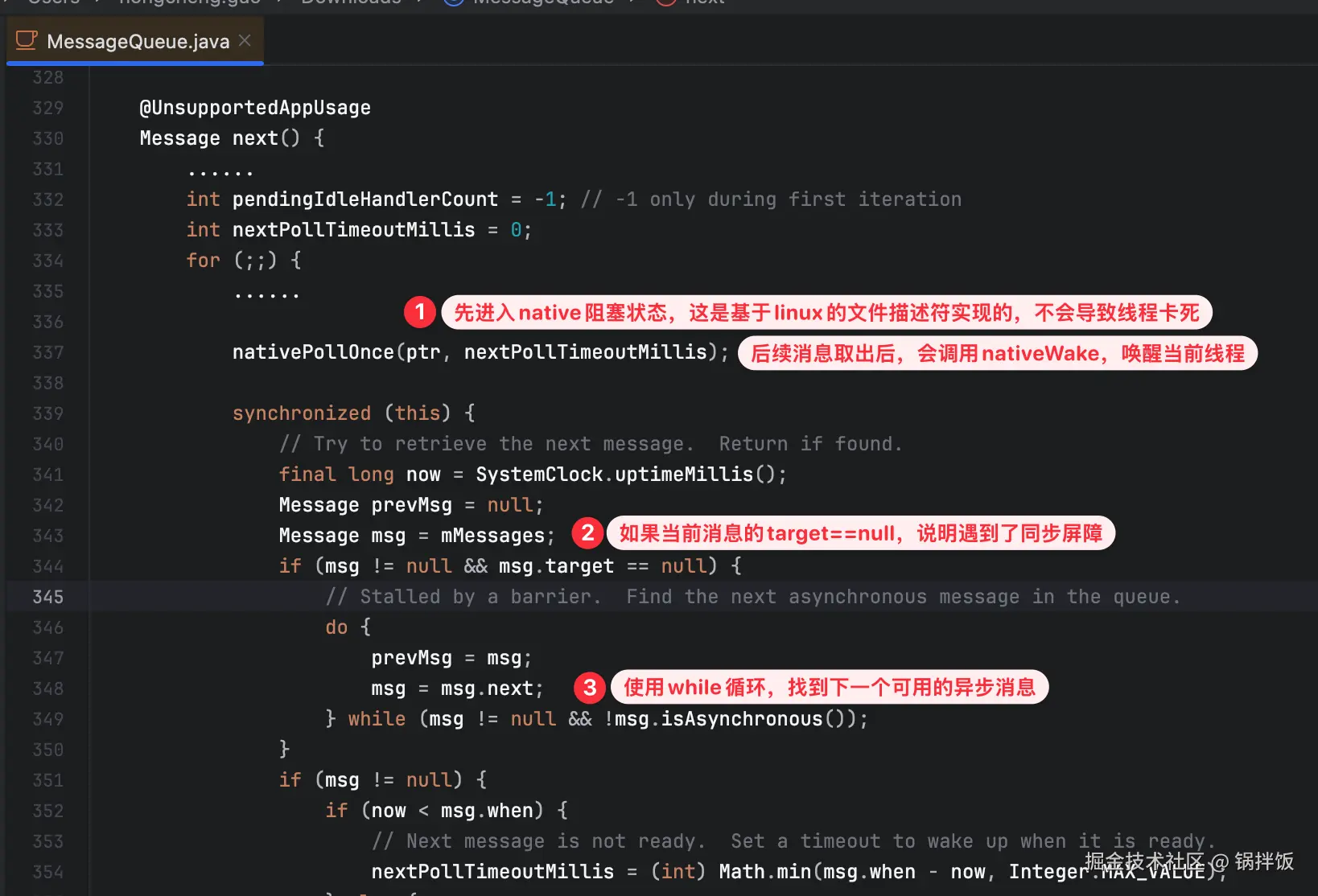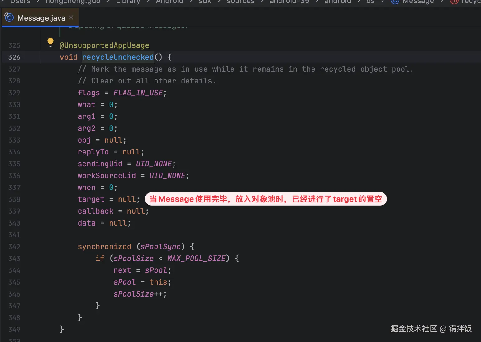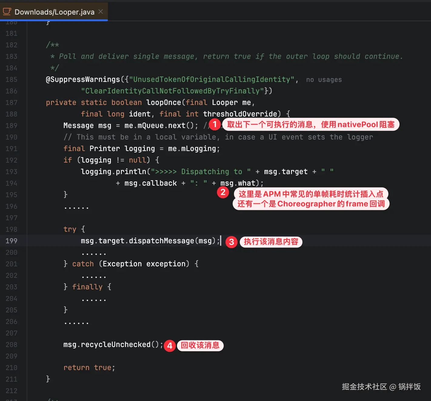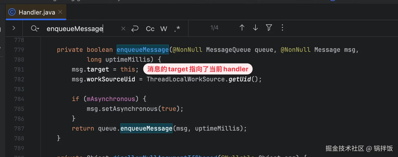 为空的消息。那么我们可以通过反射方式,拿到消息队列中,msg.target=null