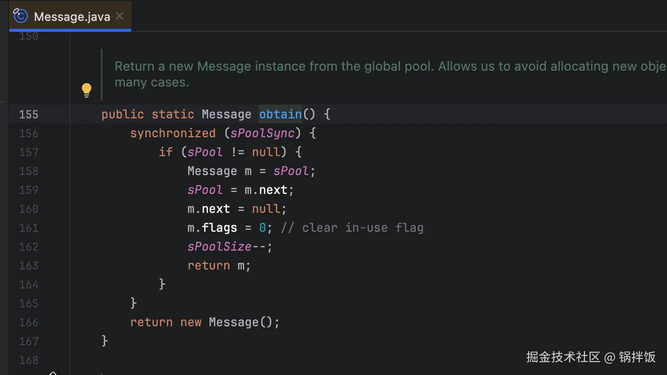 的消息使用了对象池,即享元模式,进行对象的复用,大大减少了创建对象的过程。