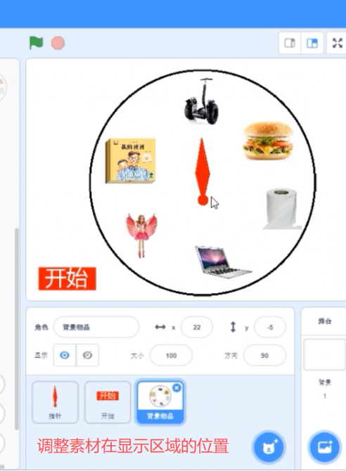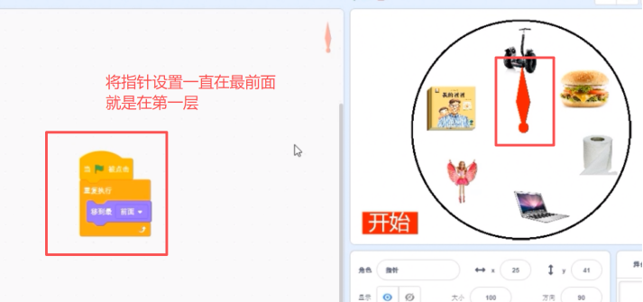 2.设置指针对象的位置在最前面,事件->外观(重复执行在最前面)
