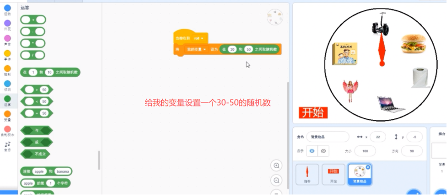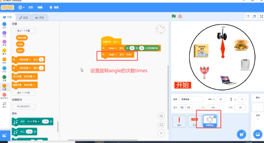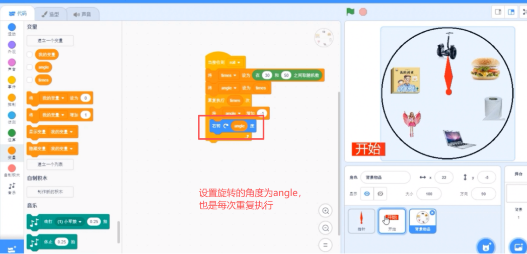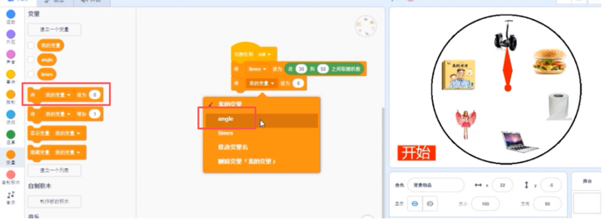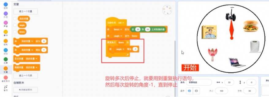 7.设置让转盘越来越慢然后停止,设置一个自变量angle旋转次数为times