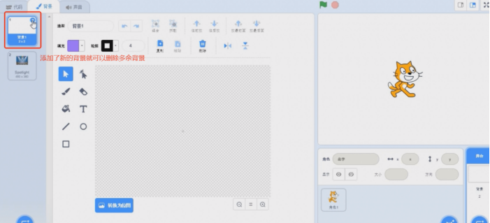 7.点击多个背景后删除之前的多余背景,但是只剩下一个背景的时候就不能再删除了。