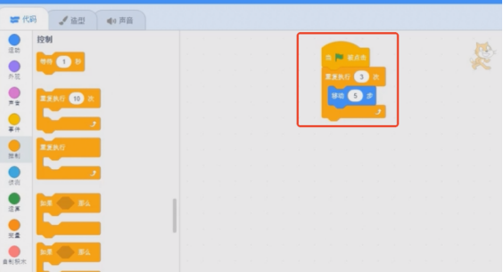 3.为了看的更清楚就在循环中添加一个等待,需要重复执行的只能放在框内不能放在框外。