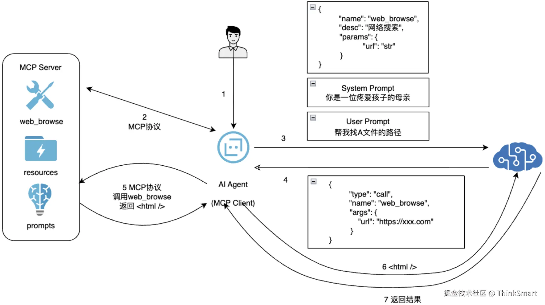 MCP虽然是为了AI而定制出来的标准,但是MCP和AI大模型是没有关系的,MCP只负责帮Agent管理工具、资源和提示词