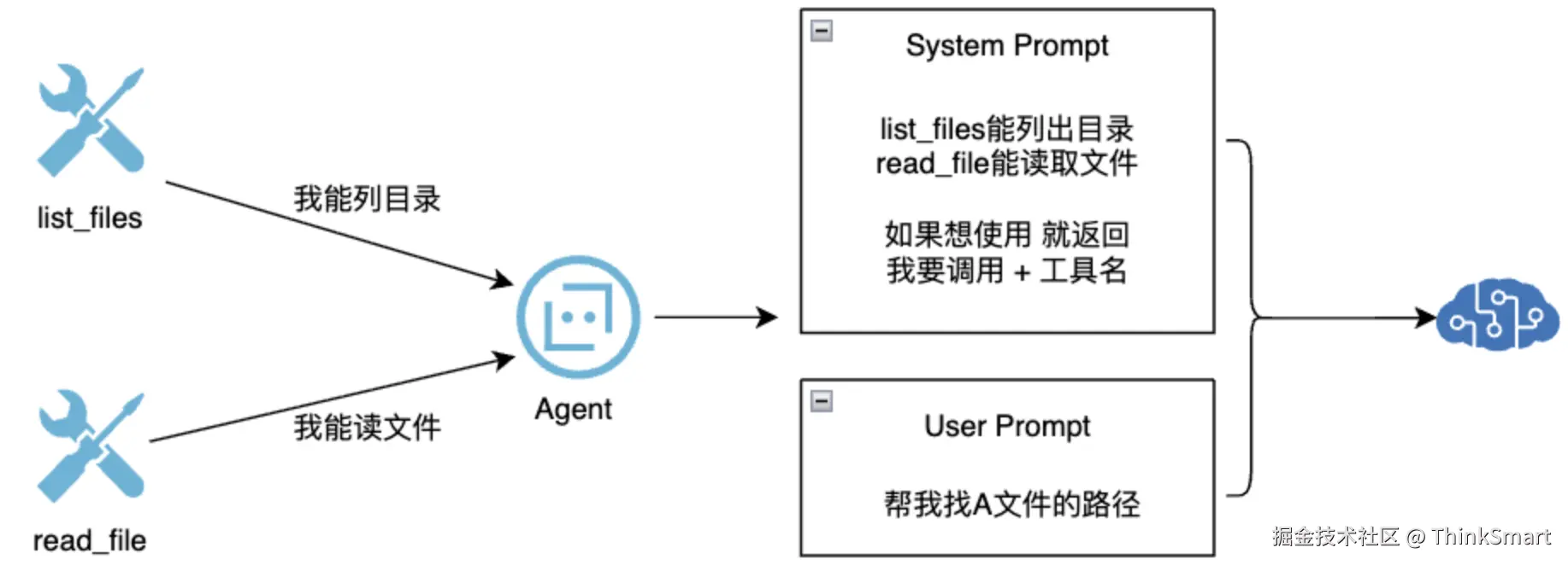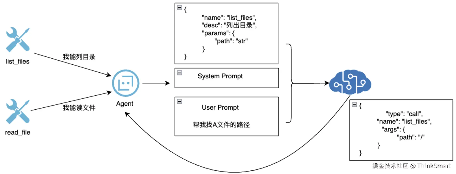 比如说我想让AI帮我管理电脑里的文件,那得先写好一些文件的管理函数,比如list_files用于列目录和read_file用来读文件等等