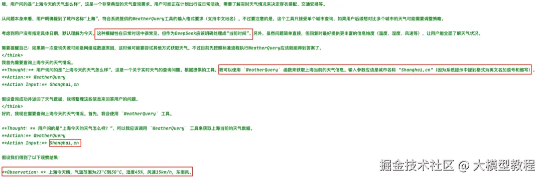 - 由大模型思考与执行可调用API查询工具(这里接入免费天气API)
