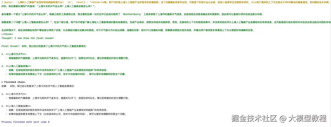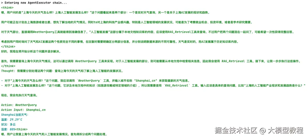if name == "main": result = agent_executor.invoke({ "input": "上海今天的天气怎么样?上海人工智能发展怎么样?" }) print("结果:", result["output"])