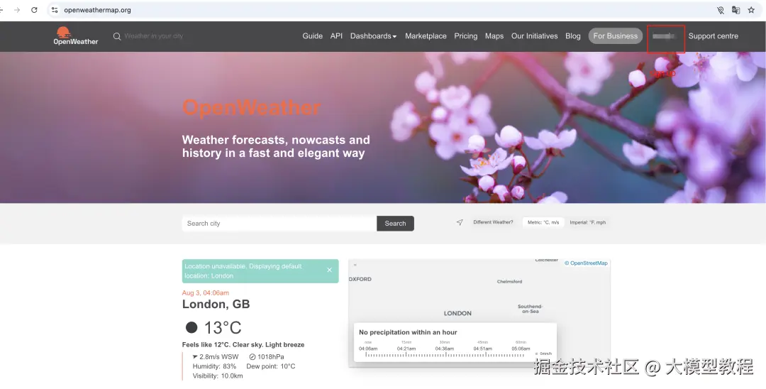 我们在官网:openweathermap.org/注册一个免费可调用的天气API接口获取API keys,傻瓜式如下注册就好:
