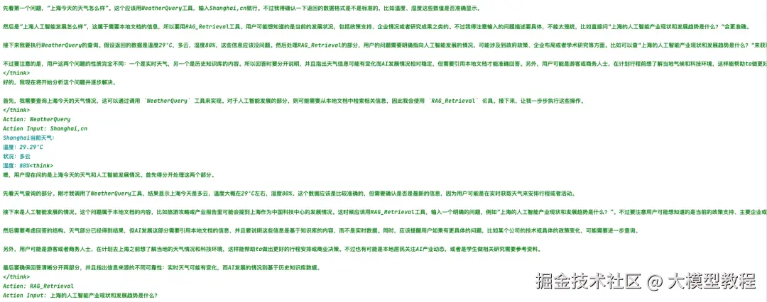 注:think标签 是agent思考过程;Action标签是去执行工具