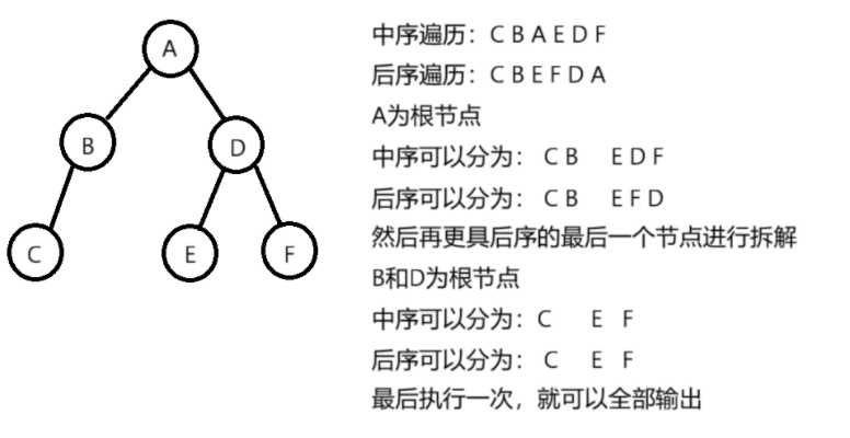 已知后序遍历:后续遍历的最后一个节点为根节点,根据A的位置对字符串进行拆解