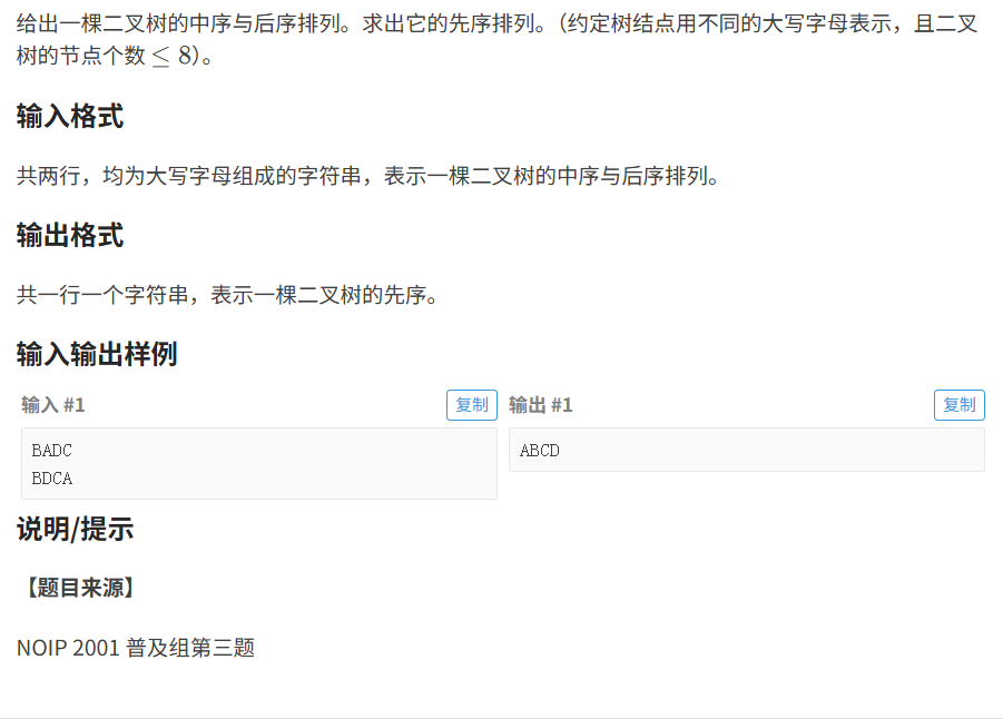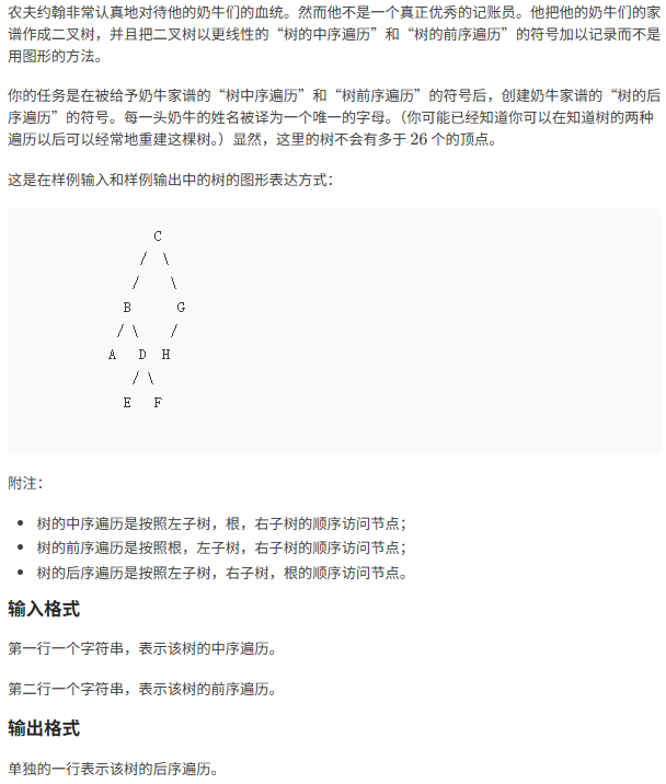 给出一个数的前序遍历和中序遍历 求树的后序遍历(代码的实现)