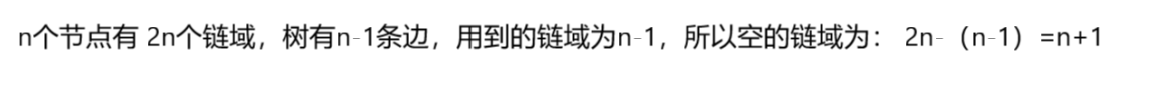 二叉树的节点和边的关系: 由于两点构成一条线,除第一条线为后面的线都会重复使用某个节点,所以边数+1=节点数