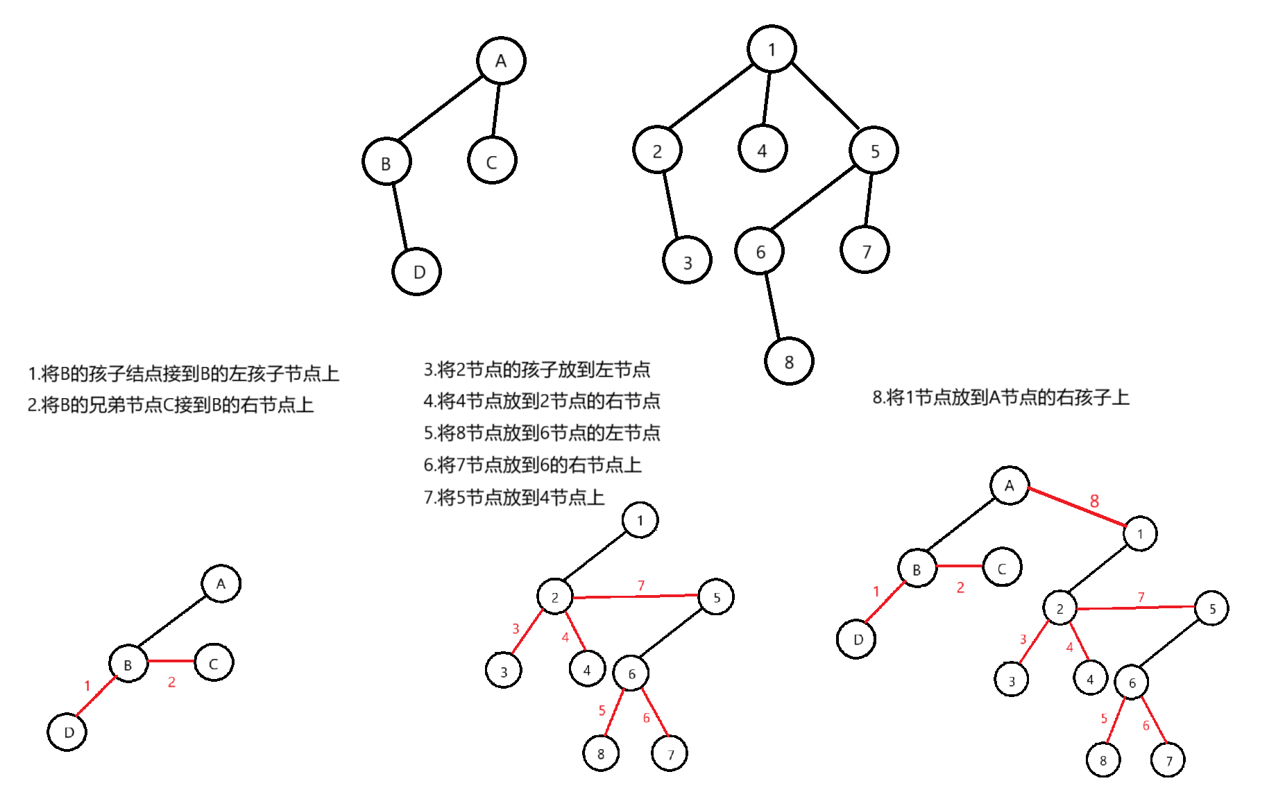 - 树和森林的区别:树只有一个根节点,森林可以有多个根节点。