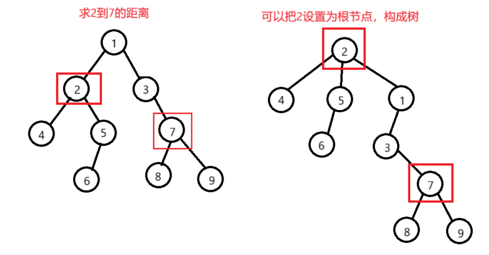 - 将一个节点设置为根节点,另一个节点为需要查找的节点