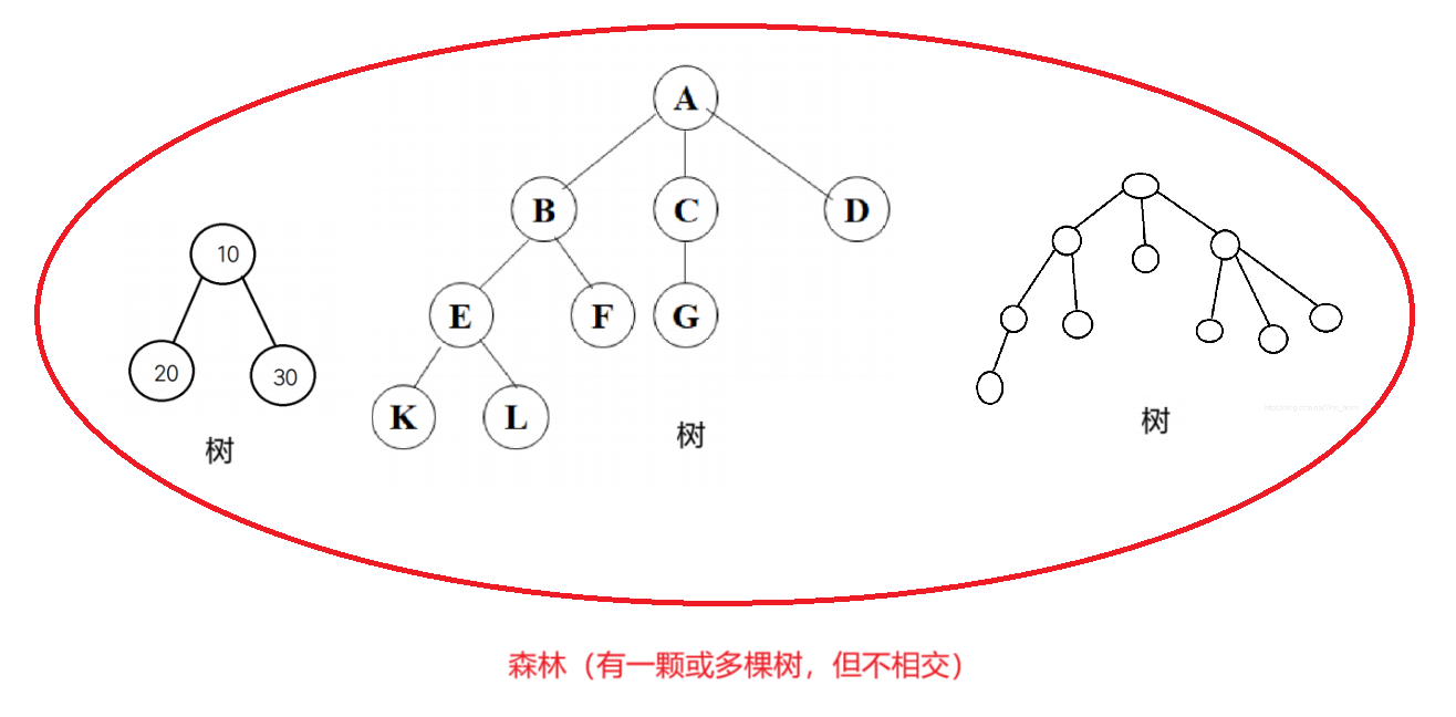 森林是m棵互不相交的树的集合,对树中每一个节点而言,其子树的集合为森林。