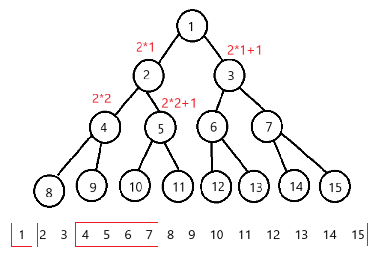 - 编号从1开始 节点为 n 的话 左节点为 n*2 右节点为 n*2+1