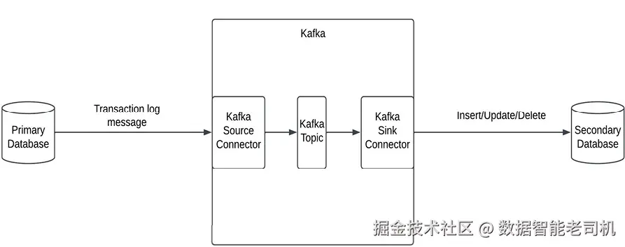 具体做法是:几乎所有数据库都会生成事务日志 ,以预定义格式记录数据库中的变更。这些日志可被读取并处理,用于将变更传播到备库。Kafka 提供了可读取这些事务日志并将其推送为消息到 Kafka 的源连接器 ;随后由汇连接器 消费消息,并在目标数据库端将其转换为相应的 INSERT/UPDATE/DELETE 语句。一旦这些语句应用到目标备库,备库即可与主库保持同步。根据需求,备库可以与主库在同一区域(仅高可用)或异地区域(同时支持灾难恢复)。
